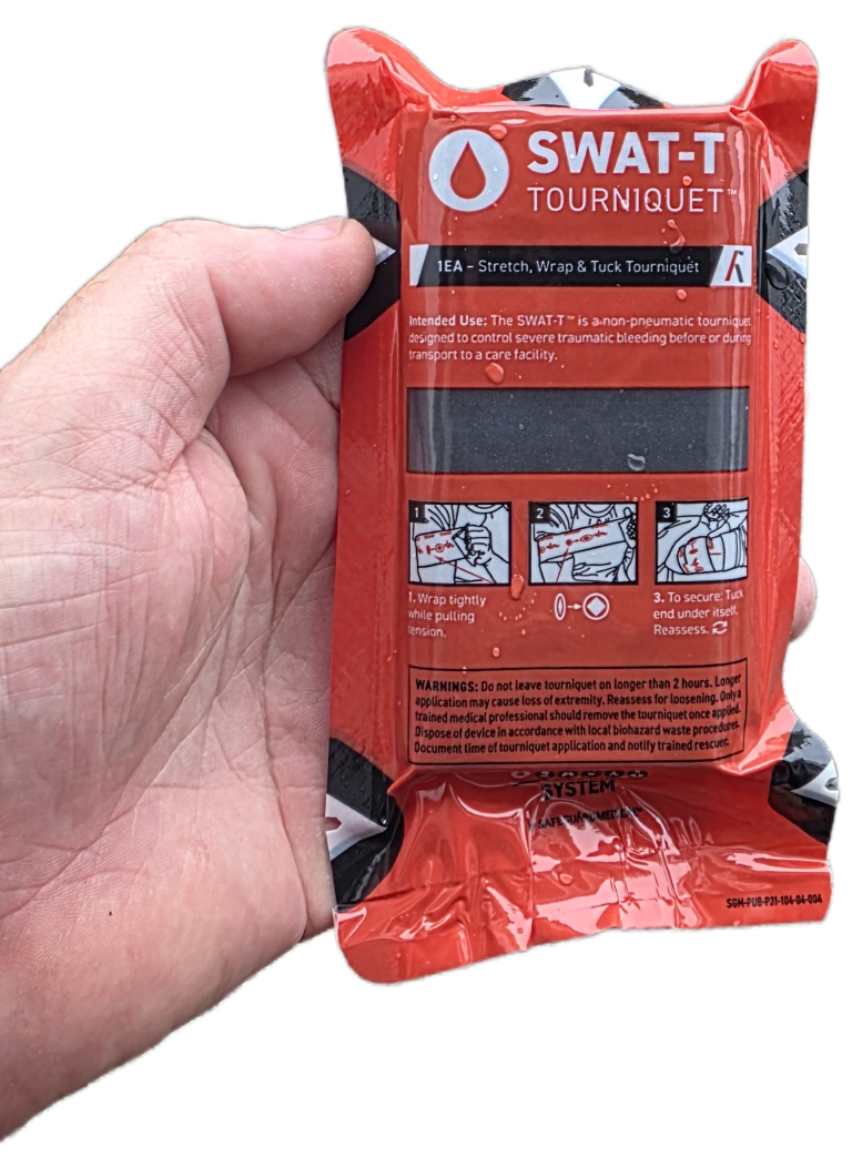 Because the SWAT-T Stretch Wrap and Tourniquet are contained in a compact and sealed plastic bag, they can be used as a supplement to just about any expanded First Aid Kit.